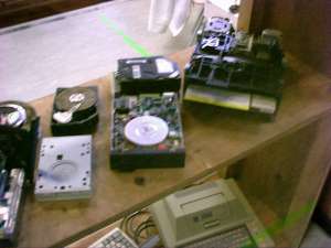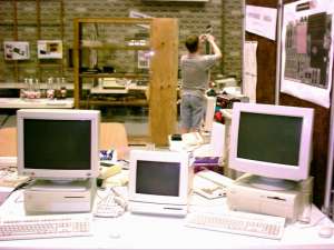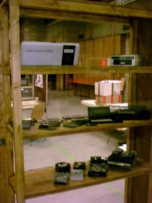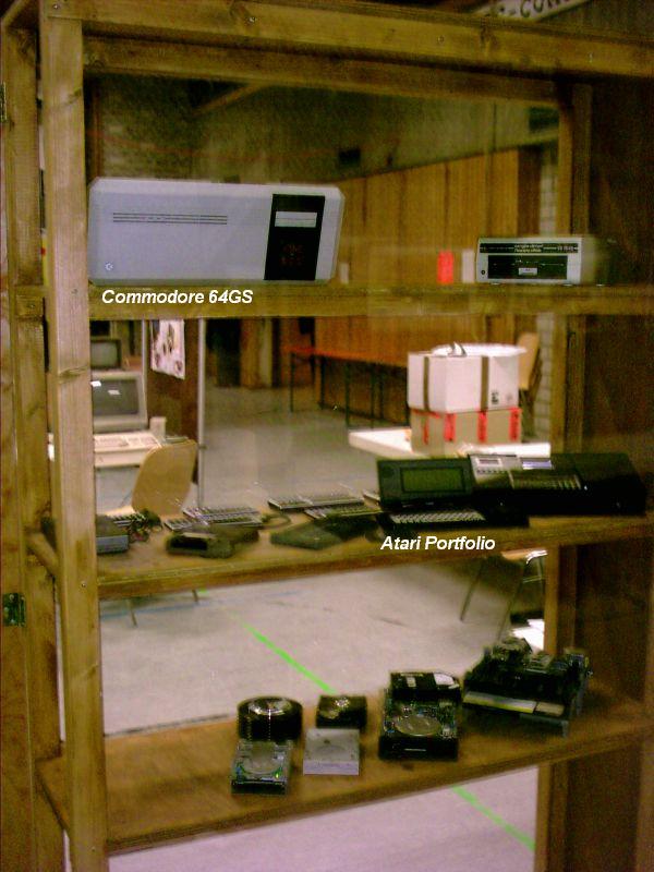 | Die Vitrine - u.a. ein C64GS-Gehäuse |
