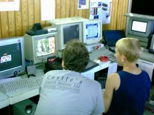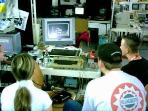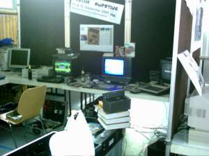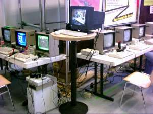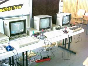 Die C64-Spielecke am Abend des Aufbautages |